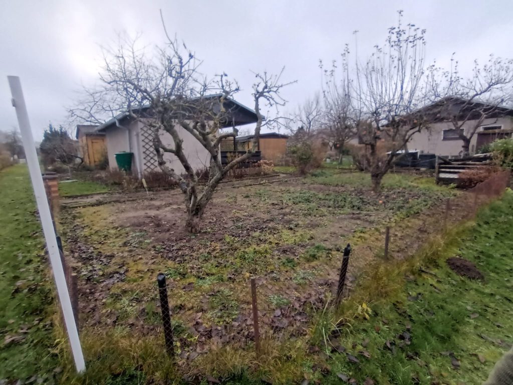 Die Laube der Parzelle 140 ist aus Stein gemauert und