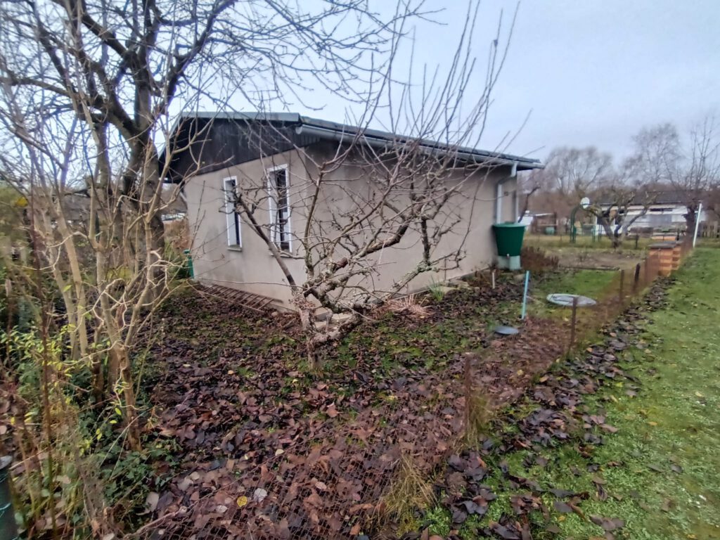 Die Laube der Parzelle 140 ist aus Stein gemauert und in seinem sehr guten Zustand.